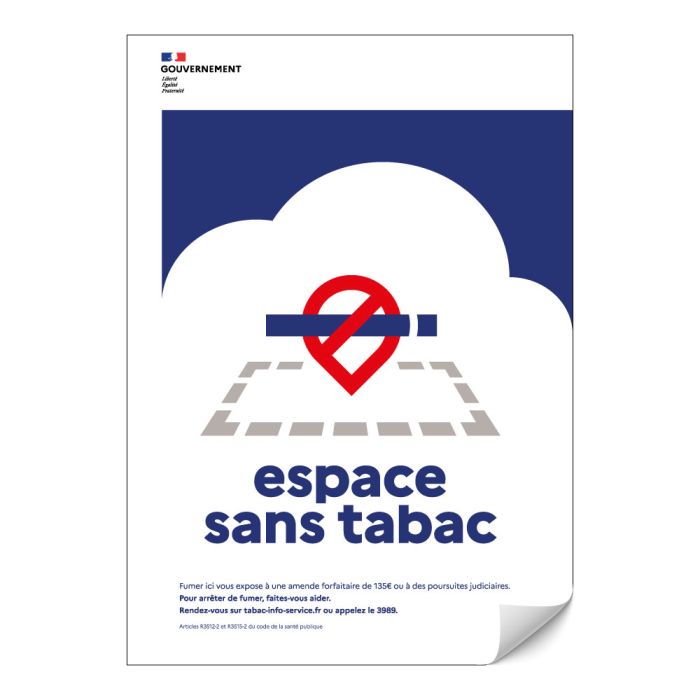- Notre adhésif rappelle la prohibition du tabac dans les lieux extérieurs, notamment aux alentours des zones fortement fréquentées par les jeunes (notamment les médiathèques et les installations sportives), selon les dispositions légales applicables à partir du 29 juin 2025 (décret n°2025-582).