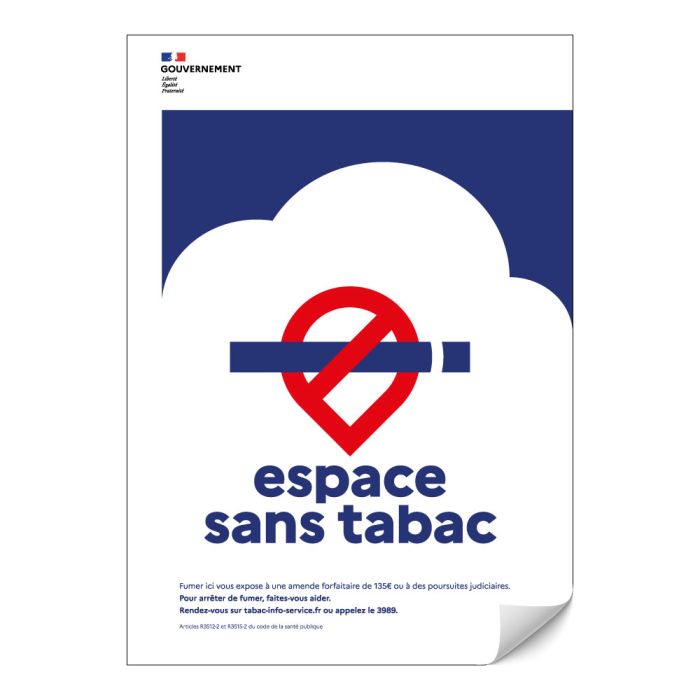 Le ministère du Travail, de la Santé, des Solidarités et des Familles a dévoilé une nouvelle signalisation officielle des « espaces sans tabac », conçue pour accompagner l’entrée en vigueur du décret dans le cadre du Programme national de lutte contre le tabac 2023-2027. Cette identité repose sur un monogramme explicite, combinant un pictogramme de géolocalisation et un symbole d’interdiction, dans une esthétique épurée. Elle est déclinée pour les lieux concernés. Novap vous les propose ainsi en différents formats, tous officiels, qui vous permettront d'afficher l'interdiction de manière claire et efficace.