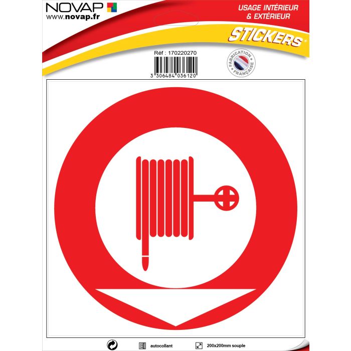 Panneau Lance incendie avec flèche directionnelle - Vinyle adhésif 200x200mm - 4036120