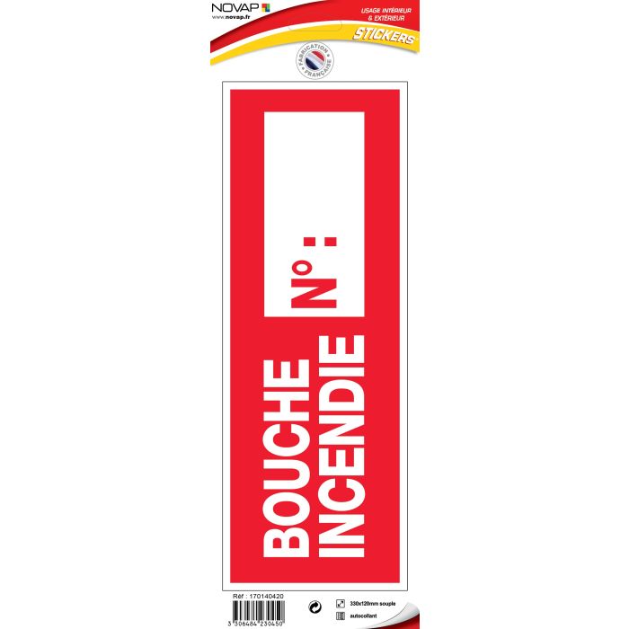 Panneau Bouche d'incendie n° - Vinyle adhésif 330x120mm - 4230450