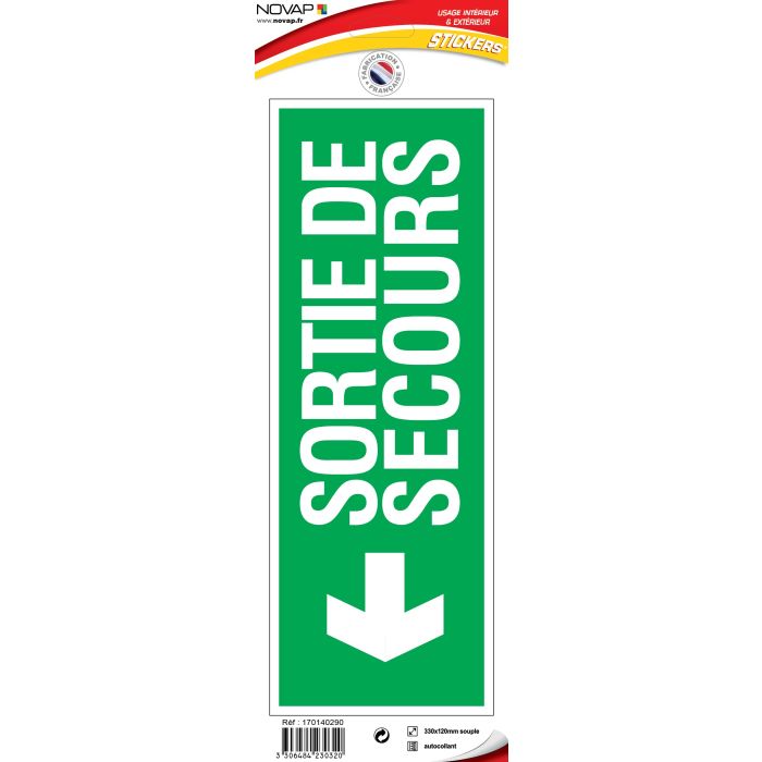 Panneau Sortie de secours flèche gauche (texte) - Vinyle adhésif 330x120mm - 4230320