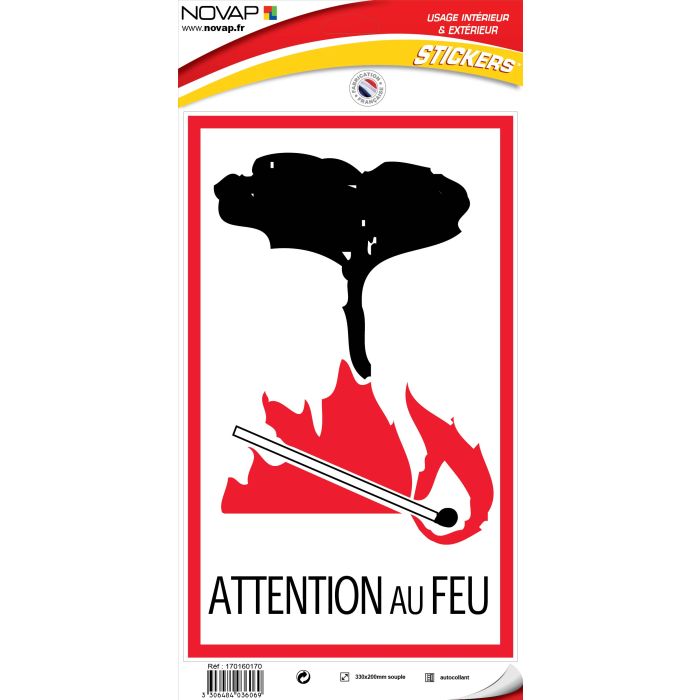 Panneau Attention au feu - Vinyle adhésif 330x200mm - 4036069