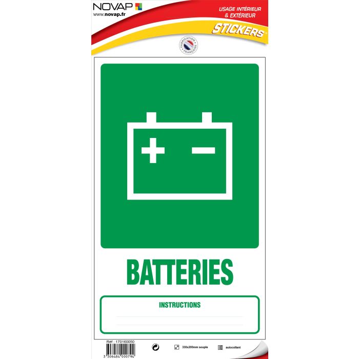 Panneau Dechets batteries - Vinyle adhésif 330x200mm - 4000794