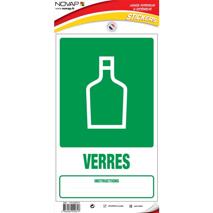 Panneau Dechets verre (tri sélectif) - Vinyle adhésif 330x200mm - 4000817