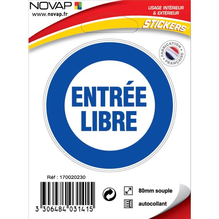 Panneau Entrée libre - Vinyle adhésif Ø80mm - 4031415