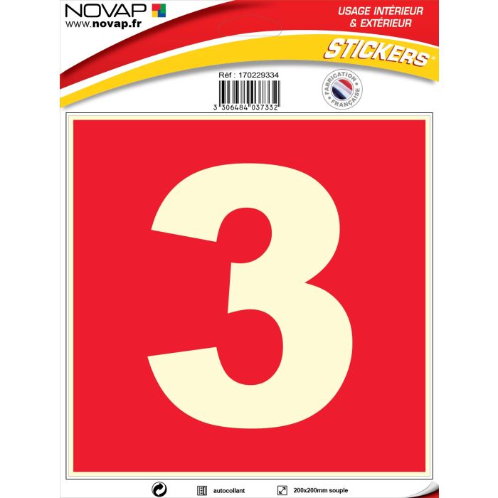 N°3 photoluminescents - 200x200mm - Adhésif Rouge - 4037332