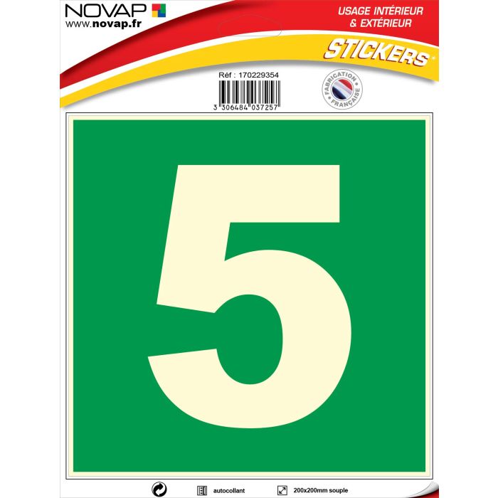 N°5 photoluminescents - 200x200mm - Adhésif Vert - 4037257