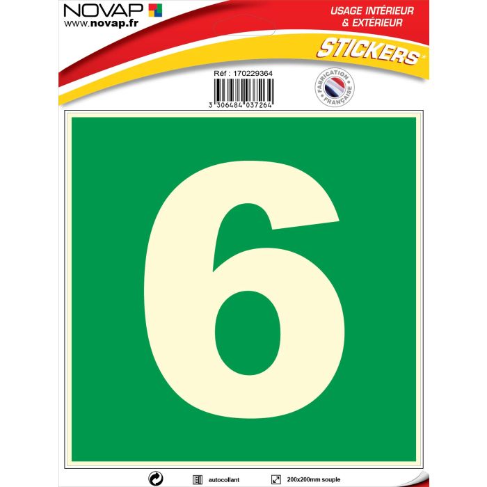 N°6 photoluminescents - 200x200mm - Adhésif Vert - 4037264