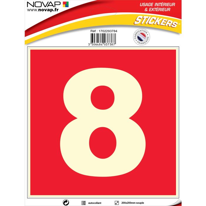 N°8 photoluminescents - 200x200mm - Adhésif Rouge - 4037387