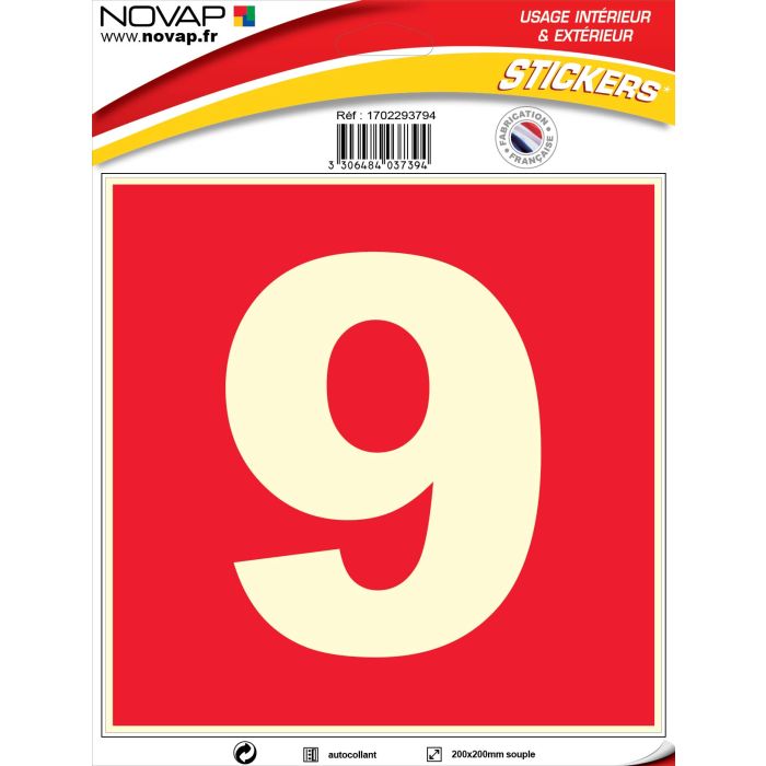N°9 photoluminescents - 200x200mm - Adhésif Rouge - 4037394
