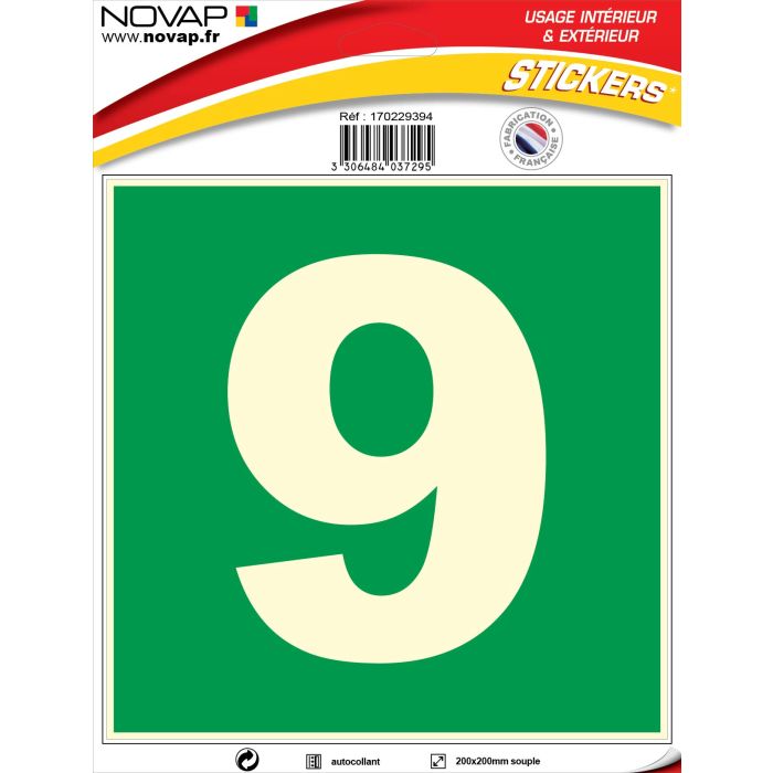 N°9 photoluminescents - 200x200mm - Adhésif Vert - 4037295