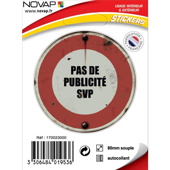 Panneau vintage Pas de publicité SVP - Adhésif Ø80mm - 4019536