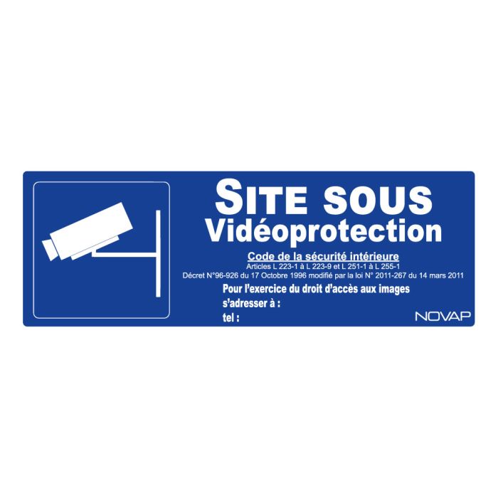 Panneau bleu Site sous vidéoprotection avec pictogramme - Rigide 330x120mm - 4141107